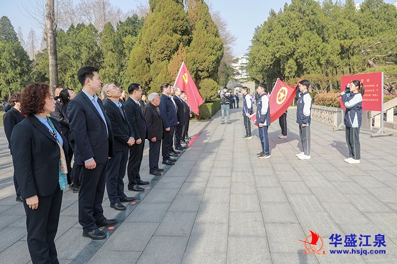 清明節(jié)即將來臨之際,3月29日上午,華盛江泉教育集團黨總支與“雙報到”聯(lián)系點沈泉莊社區(qū)聯(lián)合行動,共同前往臨沂市華東革命烈士陵園,開展“清明時節(jié)祭先烈,緬懷忠魂礪初心”主題教育。此次活動由華盛江泉集團黨委書記、總經(jīng)理高洪路親自指導,沈泉莊黨委書記、華盛江泉集團常務(wù)副總經(jīng)理、財務(wù)總監(jiān)張毅,華盛江泉教育集團黨總支書記、董事長汪會昌,以及教育集團黨總支成員、黨員代表、團員代表、少先隊員代表、“雙報到”社區(qū)人員等共同參與。