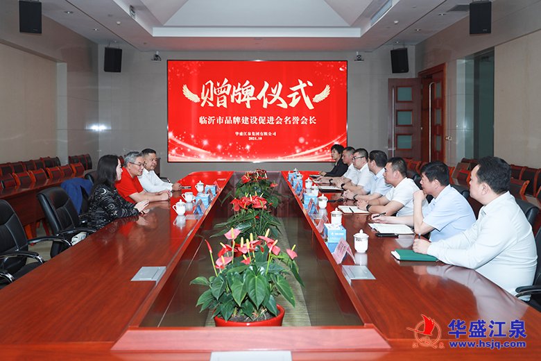 10月16日,臨沂市品牌建設(shè)促進會在集團舉行名譽會長單位贈牌儀式并進行座談交流。臨沂市政府原副市長劉賢軍,臨沂市品牌建設(shè)促進會會長胡守利、秘書長劉亦珈,華盛江泉集團黨委書記、總經(jīng)理高洪路,集團高管張毅、孟濤、付冬明、林洪標,以及華盛江泉城大酒店、臨沂江泉肉制品有限公司負責(zé)人出席儀式。