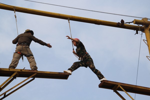 在拓展訓(xùn)練的過程中,大學(xué)生們精神飽滿、積極參與,充分展現(xiàn)了江泉人的風(fēng)采。伴隨著緊張的集合哨聲,訓(xùn)練課程正式開始,大學(xué)生們穿著整齊統(tǒng)一的訓(xùn)練服,步伐整齊,喊著響亮的口號,將青春的色彩點(diǎn)綴了整個訓(xùn)練基地。天氣炎熱,但大學(xué)生的激情不減,烈日下進(jìn)行著緊張的訓(xùn)練,課程緊湊、要求嚴(yán)格,每天的訓(xùn)練都在整齊洪亮的餐訓(xùn)聲中結(jié)束,“軍井未掘,將不言渴;軍灶未開,將不言餓;雨不披蓑,雪不穿裘;將士冷暖,永記我心!”